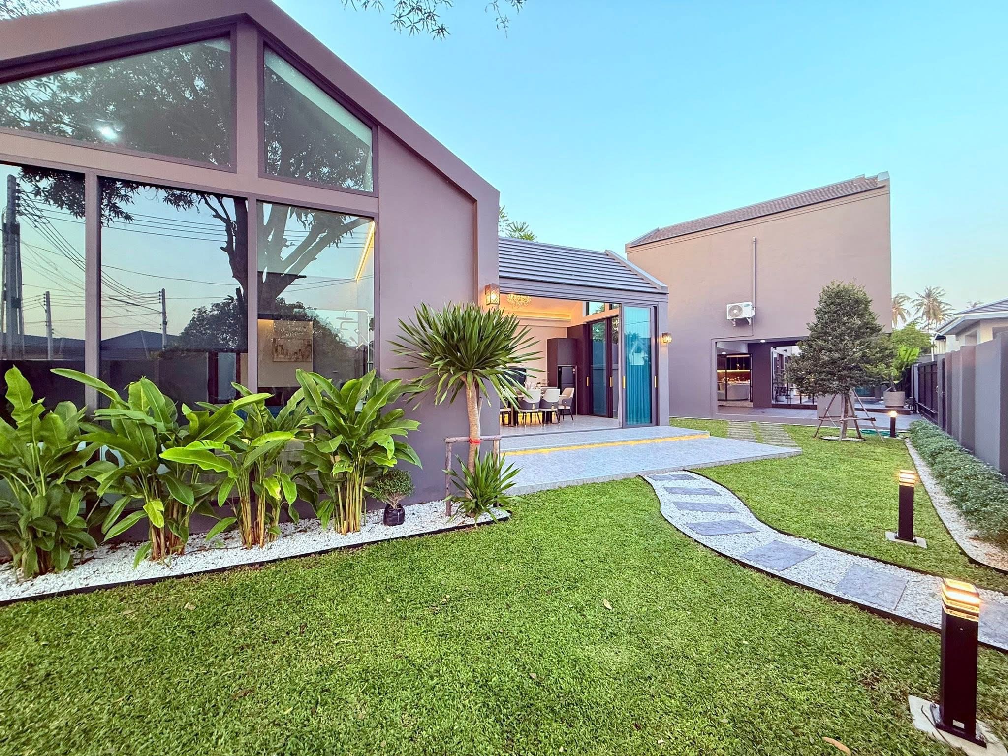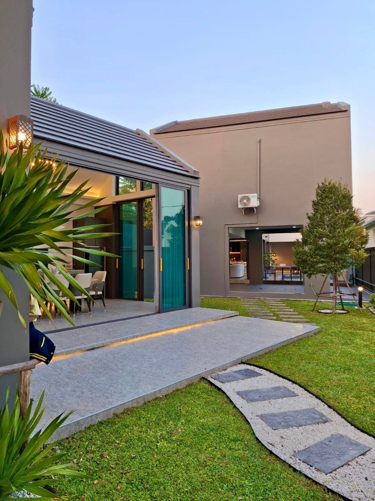 Experience modern elegance in this stunning new home, designed for ultimate comfort and style. Situated on a 556 SQM (139 TW) plot, this expansive 380 sqm property (including a guest house) offers a perfect blend of luxury, functionality, and tranquility.