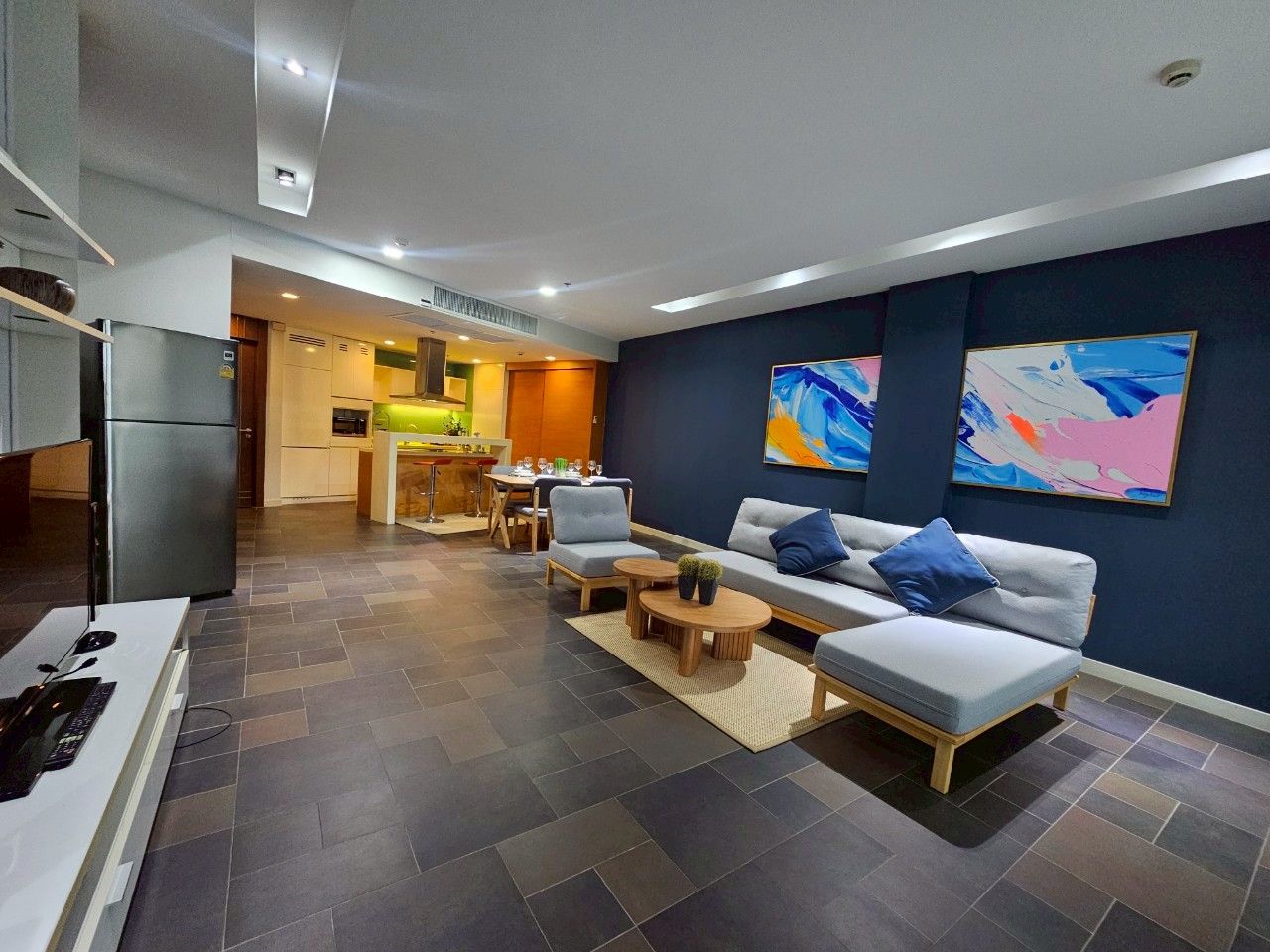 Spanning 153.8 square meters, this freehold unit—registered in foreign ownership—offers a sophisticated living space, elegantly furnished with quality designer furniture and adorned with vibrant modern artwork, creating an inviting yet stylish atmosphere.