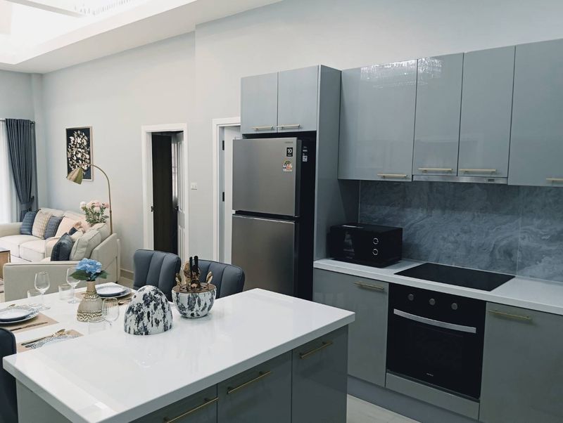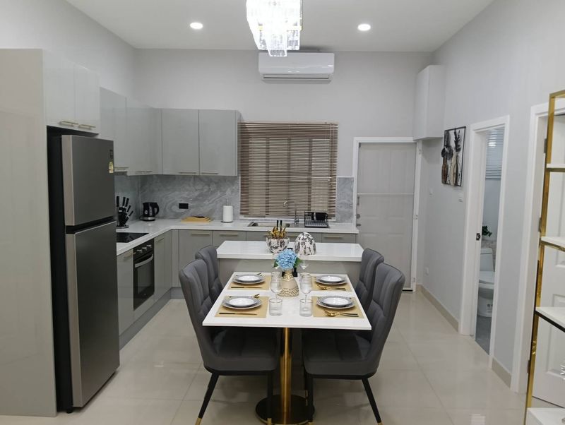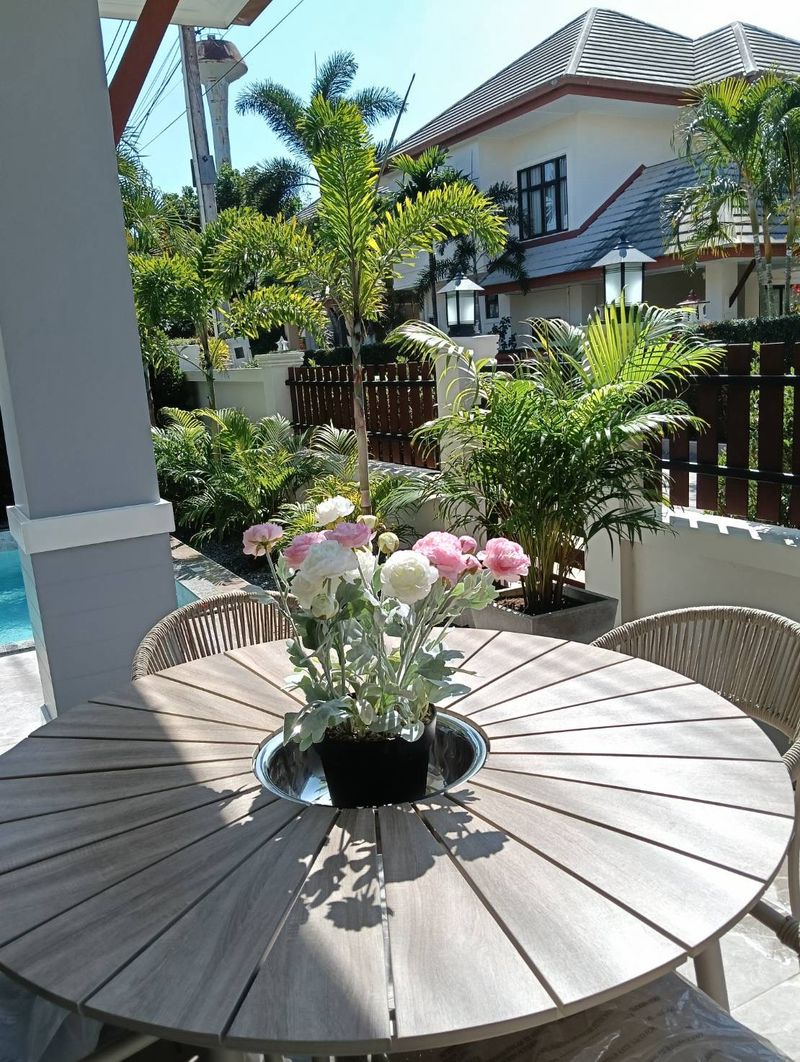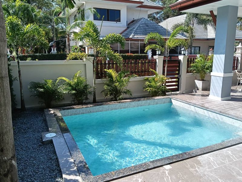This particular house is spacious house with open plan living, dining and kitchen areas, a fully equipped European kitchen will all appliances, 3 bedrooms,2 bathrooms, 4 a/c units , storage room , private pool ,bbq and grill areas,new water tank, all new water heaters , covered parking space for 1 car and big bike easily to parked in there . Villa is very quite and a lots of privacy,surrounded by lush gardens. Pool Villa is offered for sale with all furniture and decoration at a very competitive price of 6,500,000 THB .